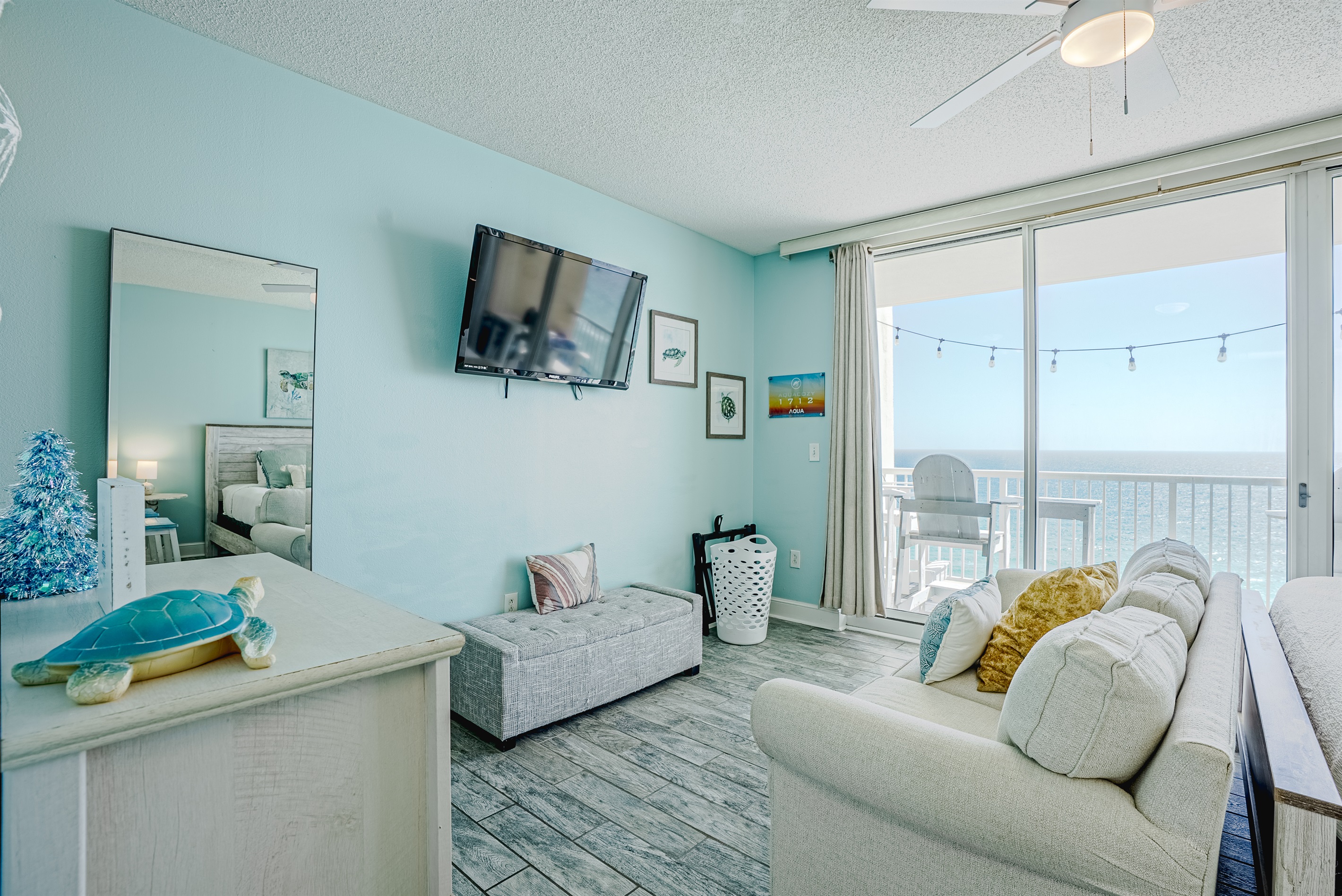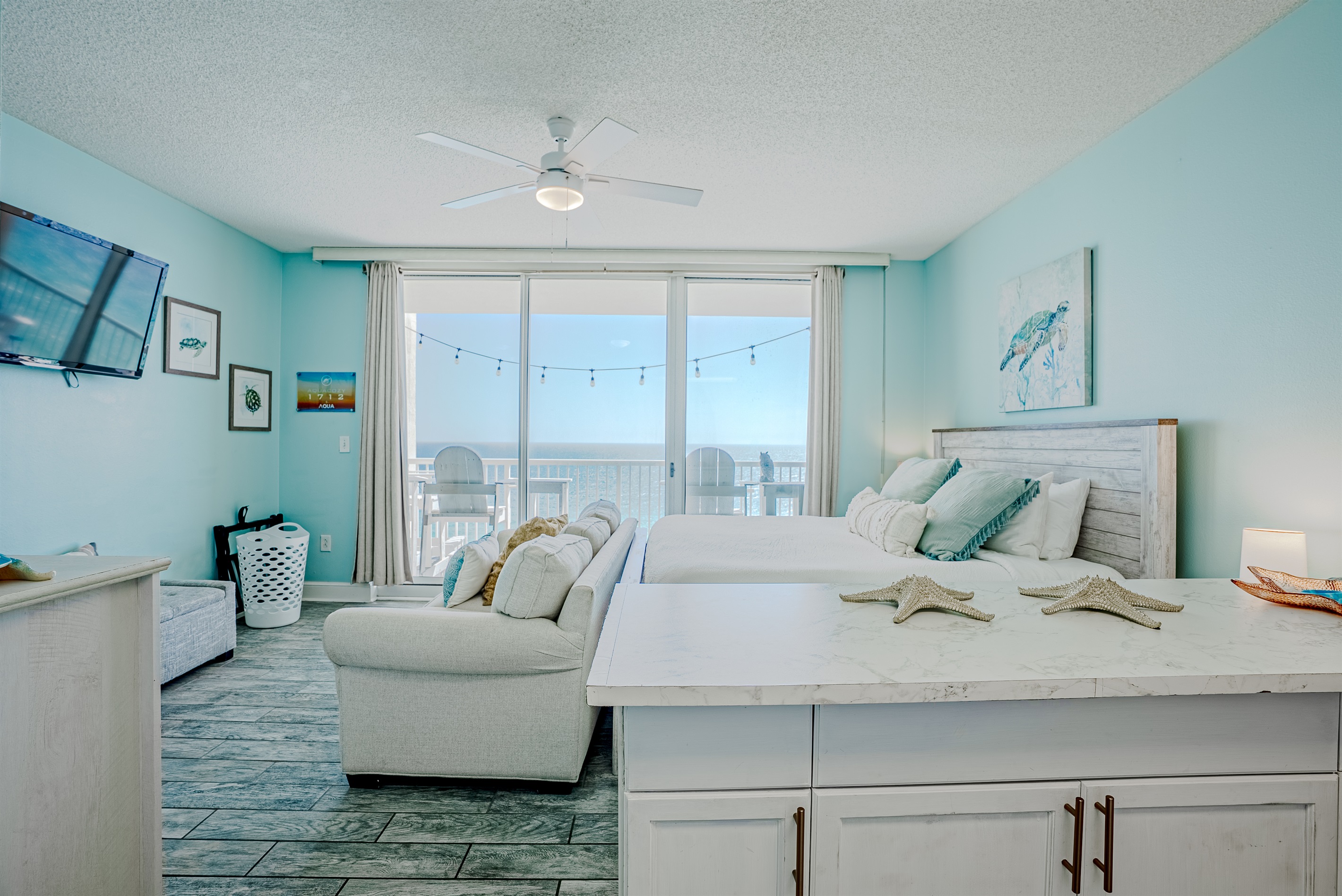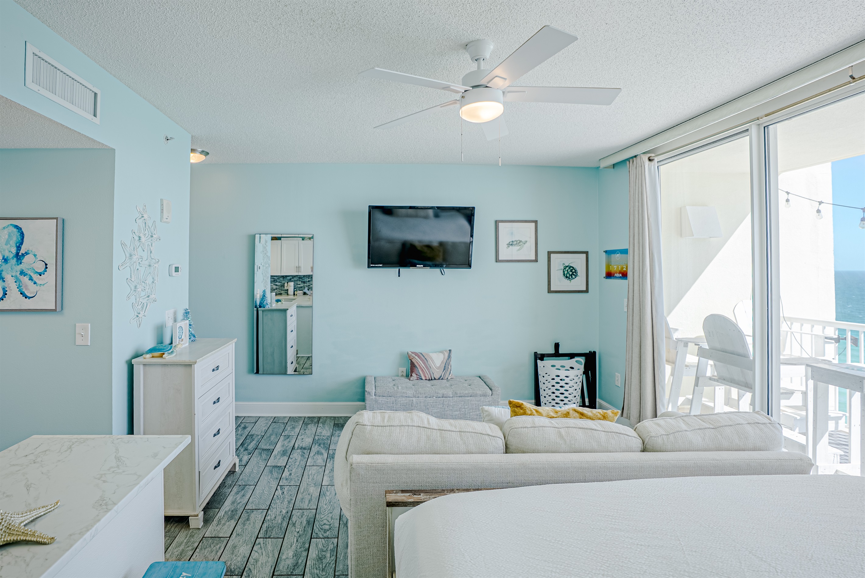 This Beachfront 2 bed studio is newly renovated and tastefully decorated. It has beautiful views of the white sandy beaches of the Emerald Coast. With your own large private balcony, you can enjoy the breath-taking sunsets in the evenings.